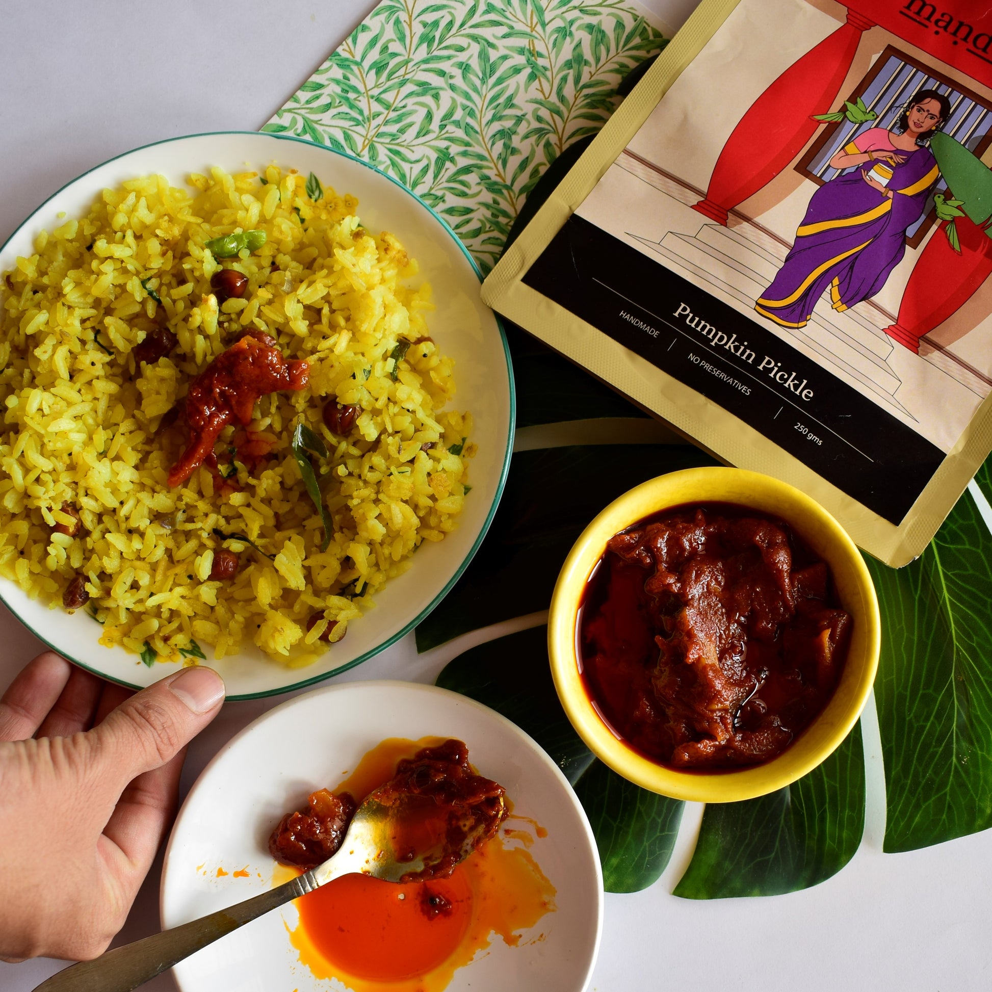 Experience the seasonal delight with Manduva’s Mango Ginger, Gooseberry, and Pumpkin Pickles. Mango Ginger Pickle offers a zesty blend of spicy ginger and tangy mango. Gooseberry Pickle brings a tangy, healthful flavor, perfect for rice and curries. Pumpkin Pickle combines the subtle sweetness of pumpkin with aromatic spices. Made with the freshest ingredients, these pickles capture the essence of each season, adding a burst of tradition and taste to your meals.