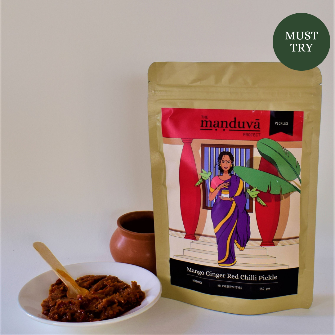 Fresh ground mango ginger infused with red chilli paste and seasoning, this pickle uses the unique mango ginger. It is a part of the ginger family and close to the turmeric, but is neither mango or ginger! Let your taste buds revel in this unique delicacy!