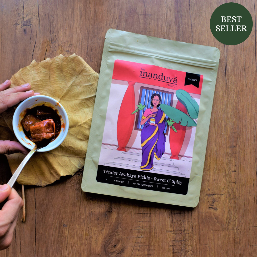 A treasure family recipe using the first harvest of mangoes without a formed shell and seed, this pickle oozes flavours of mustard and fresh seasoning through soft pieces of mangoes. The tender but crunchy pieces of mango with seasoning are a bliss! The pickle often uses local varieties of mango like kothapalli kobbari or collector mangoes.