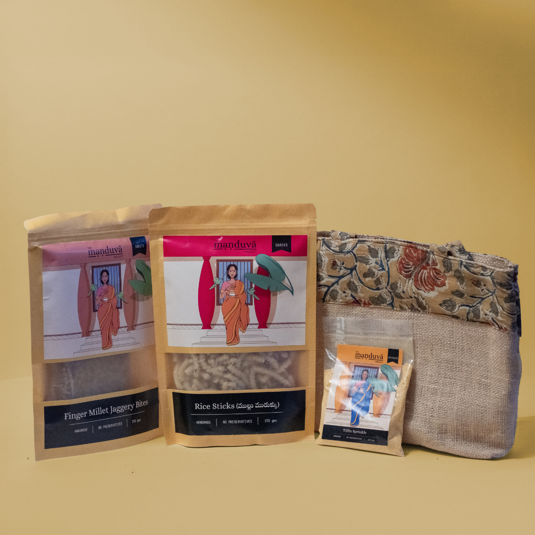 - Finger Millet Jaggery Bites (150g) – Manduva’s twist on Bhoondi Chikki, made with organic jaggery for a wholesome sweet treat.